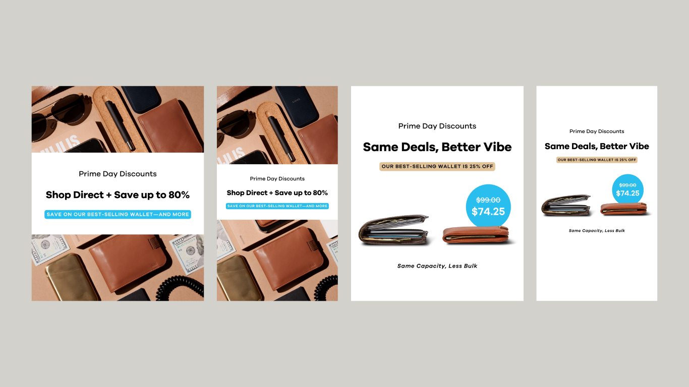 Overview: A responsive, multi-channel visual campaign designed to capture the shopping mindsest of consumers during Prime Day and drive engagement across digital touchpoints. The work unified messaging and design systems across landing pages, paid social, email series, and SMS, all with clarity, hierarchy, and consistent visual identity.