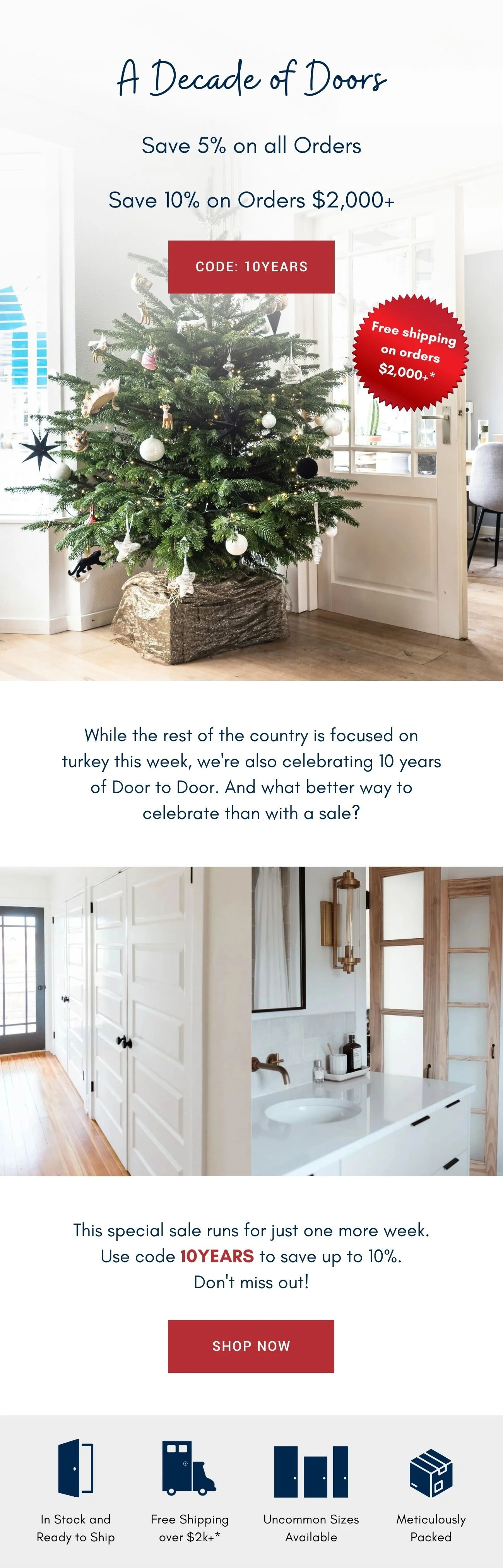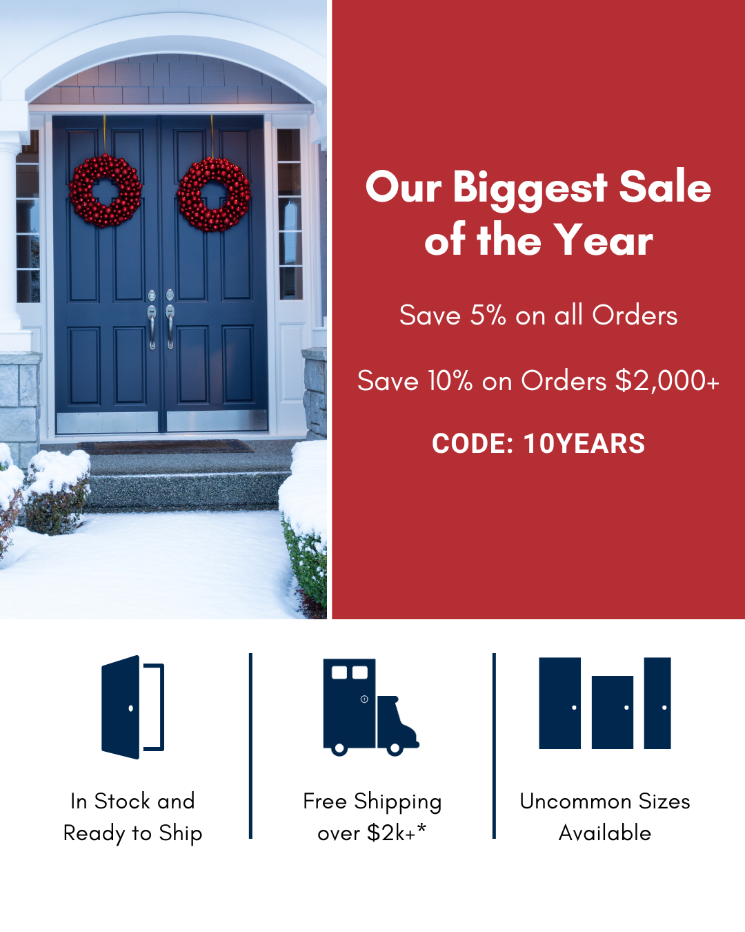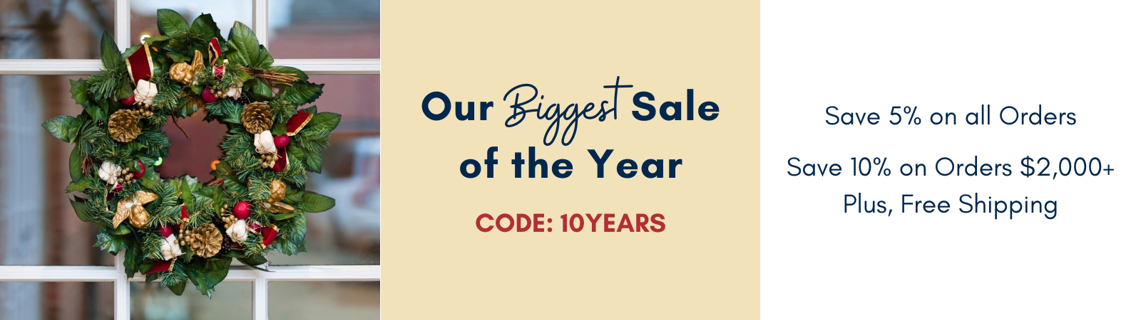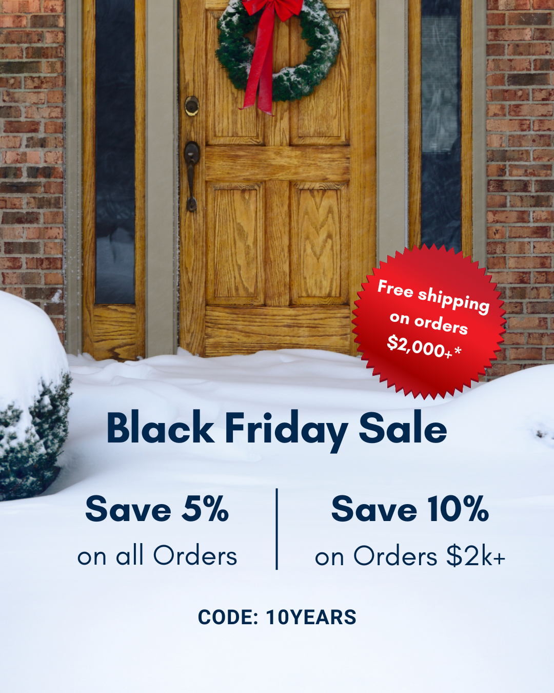 Primary Text: Shop our best deals ever with code 10YEARS to get 5% off all orders and 10% off and free shipping on orders $2,000+.